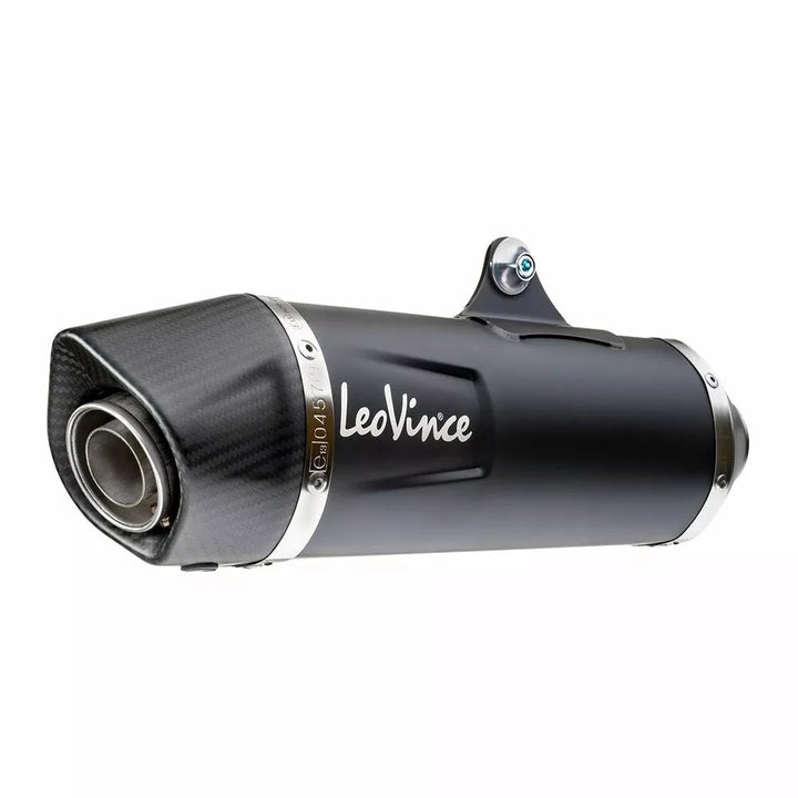 Nero slutter sig til den mørke side, aggressive stil og skarpe linjer., Leovince Nero er den nye lyddæmper til motorcykler og maxi-socooters med et mørkt og moderne look, resultatet af Leovince's konstante forskning af kvalitetsstål og eksklusive processer. CAP, metallisk keramisk-baseret sort maling, mat finish, laser ætset Leovince-logo