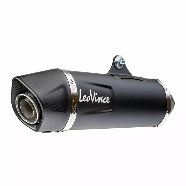 Nero udstødningssystem, aggressiv stil og skarpe linjer., Leovince Nero er lyddæmper til motorcykler og maxi-scootere med et mørkt og moderne look, resultatet af Leovince's konstante forskning af kvalitetsstål og eksklusive processer. Klar belægning til UV-modstand, metallisk keramisk-baseret sort maling, mat finish, laser ætset Leovince-logo