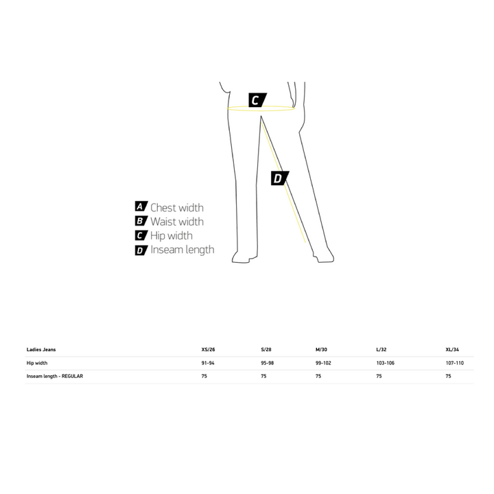 Foring: Dupont Kevlar -forstærkning på hofte, knæ og ryg.