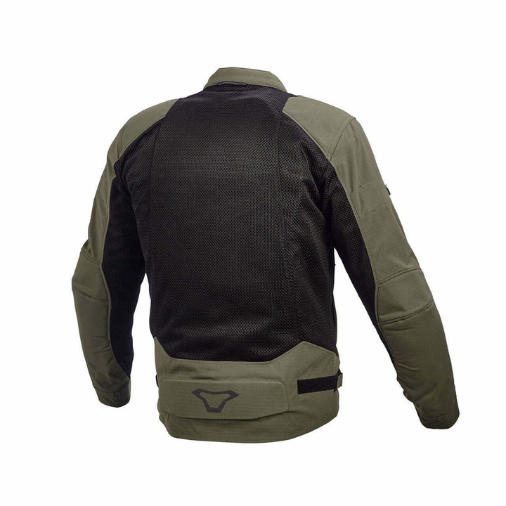 Macna Velocity Jacket. Ventileret jakke med lynlås, lavet af resistent polyester ripstop stof for øget holdbarhed. Ventilationspanelerne fremmer korrekt luftcirkulation på varme dage. Det indeholder beskyttelse på aksler og albuer med CE -certificering og tendens til montering af et bagcover (ikke inkluderet).