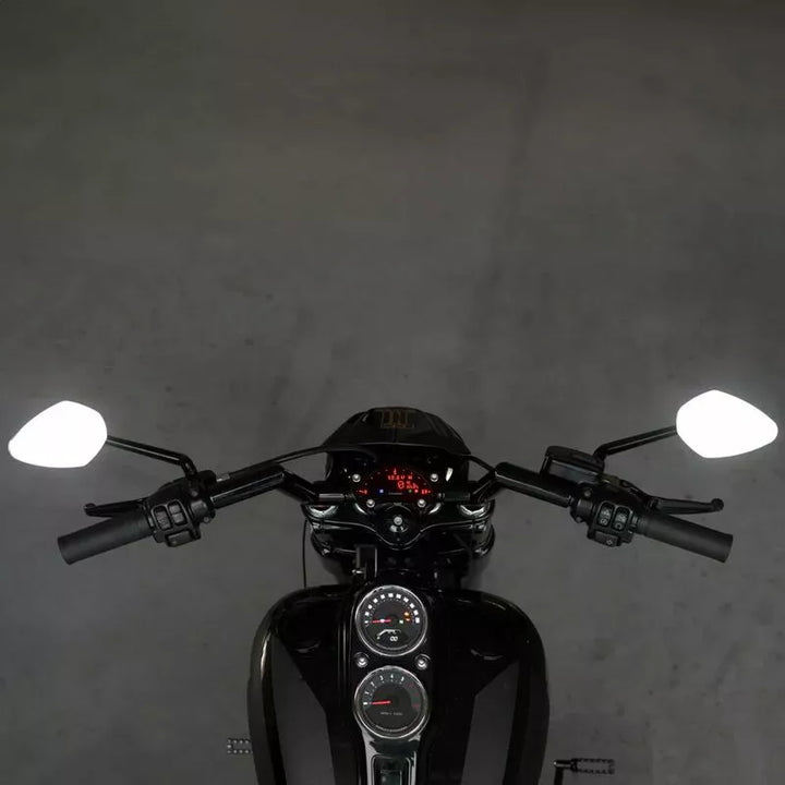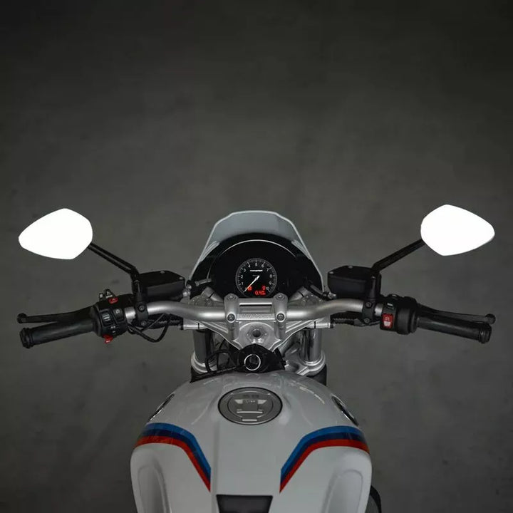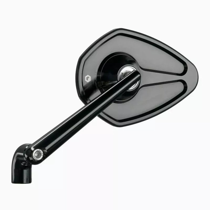 Tilføjelsesspejlet kan let monteres på enhver M10-spejltråd på styrestængerne. Afhængig af præferencer eller køretøjstype er der to armlængder at vælge imellem, der kan fastgøres perfekt til styret. For nogle modeller - såsom Harley -Davidson ™ Motorcykler - et matchende Mo.View -skruesæt er også tilgængeligt separat (Del: 06410255), er vores glasløse Mirror -serie Mo.View unik i verden. Det specielle træk ved vores spejle er den patenterede spejloverflade, der arbejdes direkte fra kroppens metal. Selve aluminiumet er spejloverfladen., Selve spejlkroppen, der bliver meget tyndt og let, hvilket skaber et vægtløst design uden kant eller ramme. Den konvekse spejloverflade fremstilles ved flueskæring ved hjælp af diamantværktøjer på ultra-præcisionsmaskiner i Berlin. Det fremstilles derefter resistent over for oxidation, korrosion og slid ved en kompleks plasma -belægning i et vakuum., Spejlkroppen og spejlarmen er fræset fra fast aluminium på CNC -maskiner og anodiseret til høj kvalitet. Alle skruer er lavet af rustfrit stål. , De nøjagtige kugleled den behagelige og meget stabile justering af spejlet. Glasbrud eller fald ud er simpelthen ikke muligt., Monteringsspejlet kan monteres på ethvert spejltråd M10 på styret. Tre monteringsskruer med forskellige tråd leveres. Spejlet er velegnet til venstre og højre side, spejlkropsbredde: 122 mm., Spejlkropshøjde: 83 mm., Længde spejlarm: 180 mm., Tykkelsen af spejlkroppen uden kuglehoved: 4,5 mm., Vægt: 178 g. ARM (med ECE-markering), 1 x skrue M10 x 1,5, 1 x skrue M10 x 1,25 Højre tråd, 1 x Skrue M10 x 1,25 Venstre hånd og instruktionsvejledning.