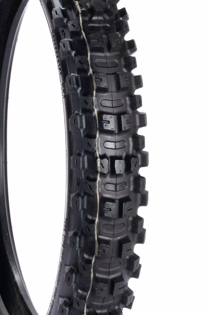Den seneste tilføjelse til Motoz MX Dækområdet er Terrapactor MXI (MX Intermediate) konkurrencedæk. Konstrueret med en let krop og designet til at udmærke sig i mellemliggende til hårdt terræn (blanding af løs og pakket jord, hårdpakket jord og dybe tunge ruts). Benchmark for MX Dækpræstation på tværs af flere typer terræn!, MXI -dækket skiller sig ud med sit karakteristiske mønster, specifikt udformet til at levere toppræstation. Ved strategisk at inkorporere flexpoint i slagtekroppen og knotter giver MXI -dækket forudsigelighed og forbedret hjørnesgreb, tilpasning og bøjning i henhold til terrænet for at give større kontrol og selvtillid, mens du kører. Hårdt pakket jord og dybe tunge rutsler), fuld rækkevidde fra mini-kryds til store cykler (15 forskellige størrelser), to forreste dækstørrelser, 80/100-21 for den mest aggressive på sporets ydeevne og den helt nye 90/100-21 med en højere profil for øgede forhold, unikke flexzoner indbygget i slagtekroppe og knober til forbedret følelse og overholdelse, flex zones inkorporeret i alle behandlinger til at forbedre kogningen og drive og køre og køre og køre og køre og køre alle Ny indvendig sidevægskonstruktion for forbedret overholdelse