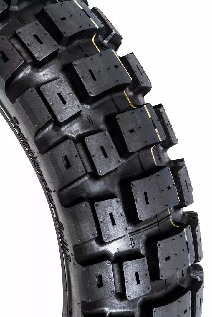 Baseret på det populære Tractionator-eventyr, men med mere aggressiv off-road-trækkraft i alle vejrekstremer. Uden behov for at skifte dæktryk mellem off road og på vej., Giver selvrensende og selv-nedskærende slidbanemønster fremragende forudsigelighed og strømforsyning., Hybrid til kystforbindelse med silica til optum greb i mudder og sne. Skove og brandstier., Rallz fås også i række af rørtypeeventyrstørrelser til letvægtseventyrcykler.