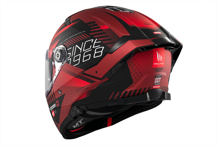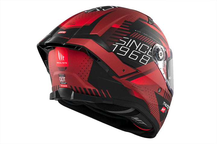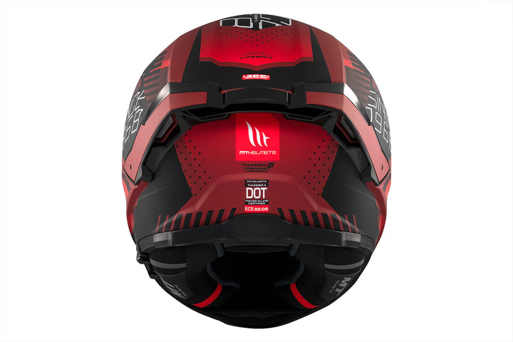 MT -hjelme har taget sikkerhed alvorligt. Thunder 4 SV er resultatet af mange års innovation og test. Kombinationen af ECE 22.06 og DOT -godkendelse Gør det til en af de mest testede hjelme på markedet i dag.