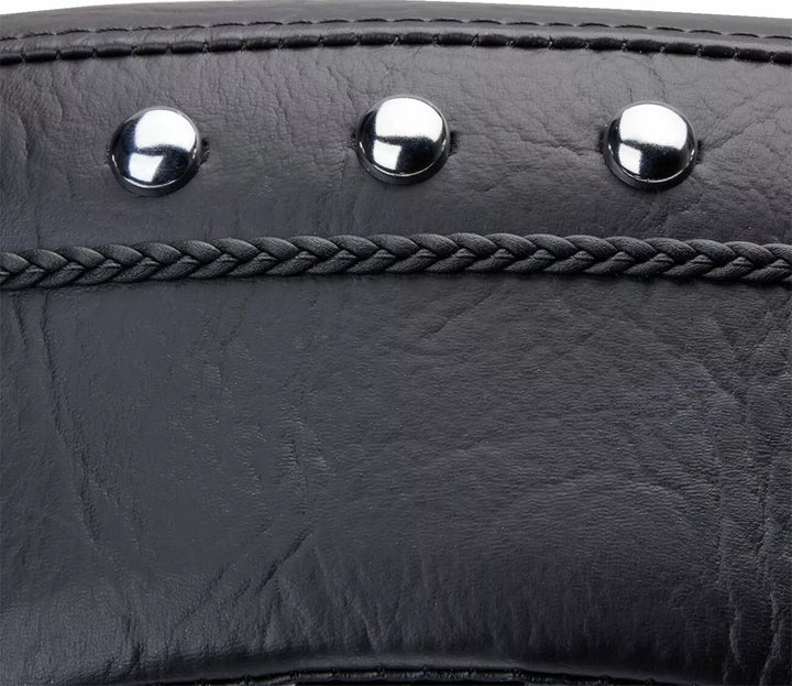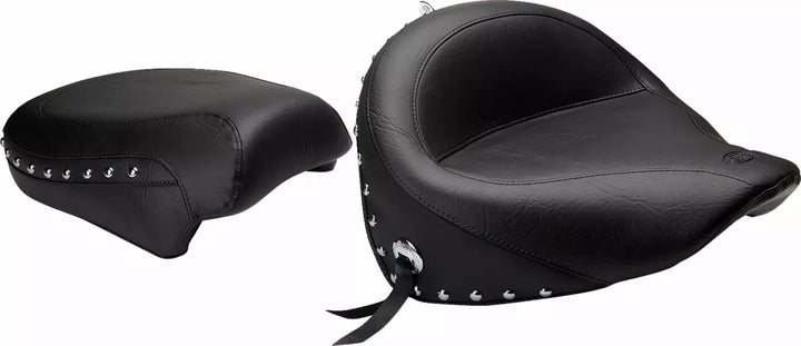 Dybt kontureret spand; Passagersædevinkler frem til støtte for rytterens ryg, indbyggede stålstøttevinger i passagersædet, udvidet vinyldækslet, lavet i U.S.A.