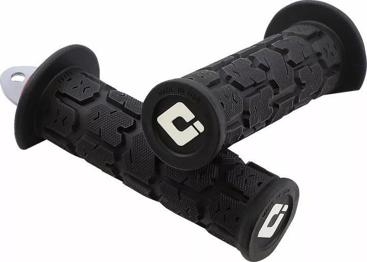Chunky, overdimensioneret greb giver ekstra stødabsorption og forbedret kontrol, større grebdiameter leverer ekstra polstring, robust overflademønstret for bedre trækkraft, ekstra-store hævede puder giver stødabsorption med dybe riller til kanal 1ST PASSPAN og affald, Patenteret Lock-on-pakning Lås-Letter, der er lettet ODI V2.1 Lock-Jaw Clamps med skruer, Patenteret Lock-On Grib Systems ™ -udnyttelse af LEVERIVERNINGER OGSPLASSER 100 Slip gratis ydelse