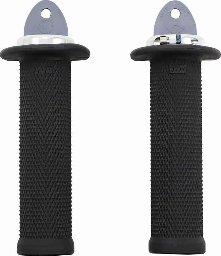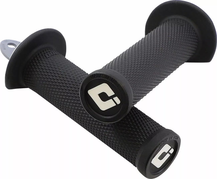 Lavprofil greb Deliving af enestående kontrol designet specifikt til racing, fuldt diamantiseret mønster giver slank profil og fremragende trækkraft, eksklusiv 3/4 flangedesign beskytter hænder og giver adgang til tommelfinger-throttle, støbt indre 1. pas for let ODI v2.1 Lock-Jaw-klemmer med skruer, Pated Lock-On Grip System ™ Design Divers Easy Installation og sikrer 100% Slip Gratis ydelser