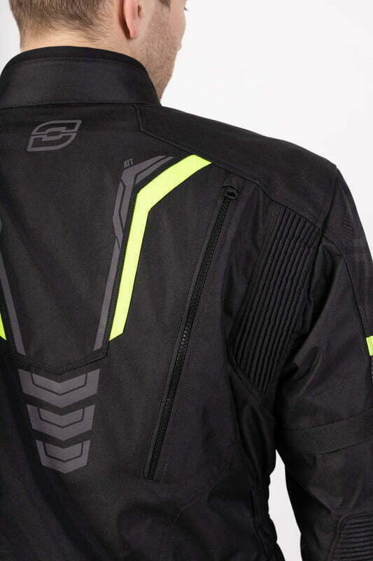 Turistmotorcykeljakke udstyret med en aftagelig vandtæt membran. Det har CE -niveau 1 -beskyttelse på skuldre og albuer og en lomme til beskyttelse på bagsiden. God luftudveksling sikres af seks ventilationskanaler - fire foran og to bageste.