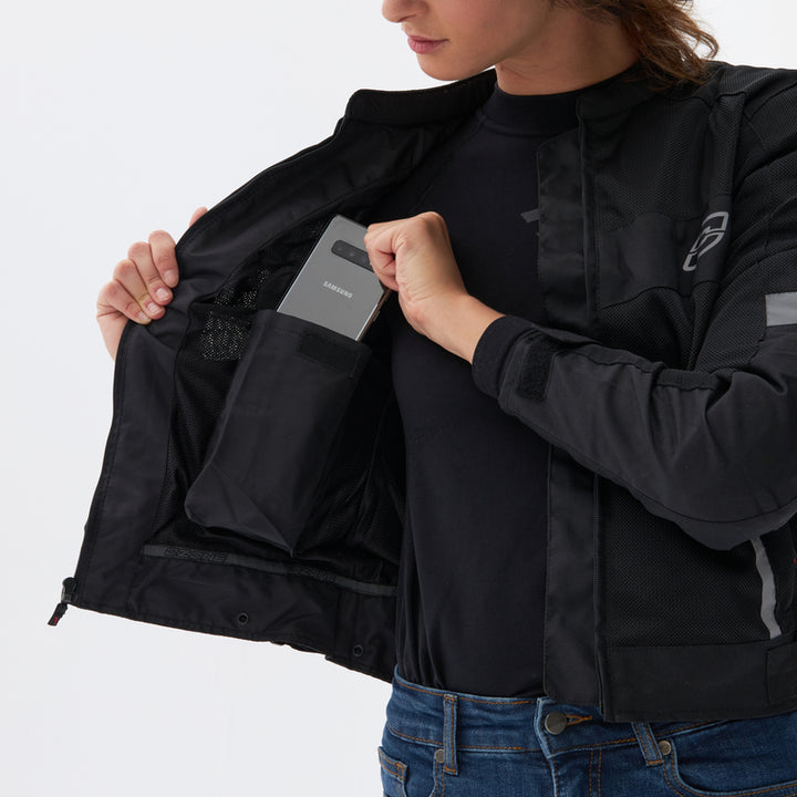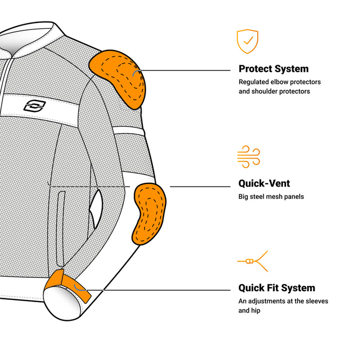 Ozone Dart er en let og ventileret MC-jakke designet til at give maksimal komfort i varme temperaturer. Med store mesh-paneler på forsiden, bagsiden og ærmerne sikrer den optimal luftcirkulation, samtidig med at den opretholder et højt sikkerhedsniveau med CE-certificerede beskyttelser på skuldre og albuer.