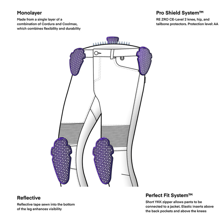- Beskyttelsen kan fjernes til at blive brugt som almindelige jeans