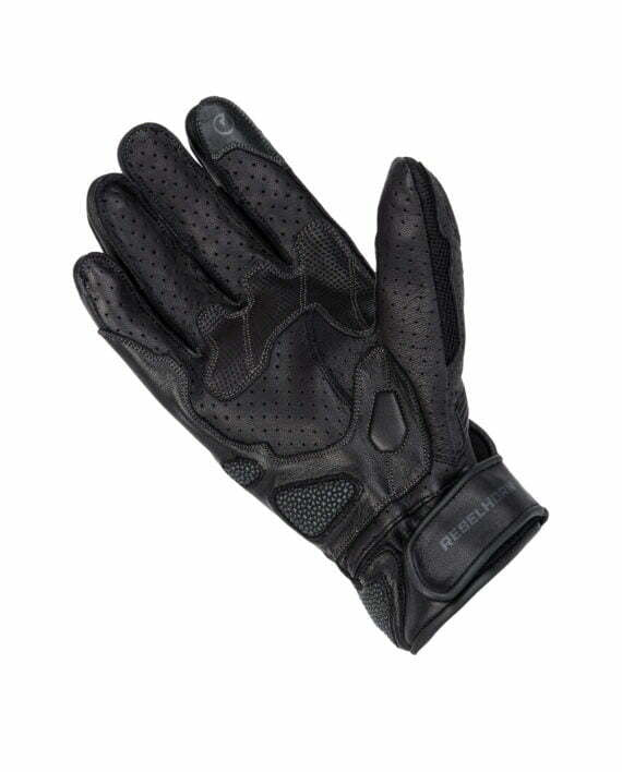 Perforeret læder på fingrene og sub og toppen af handsken