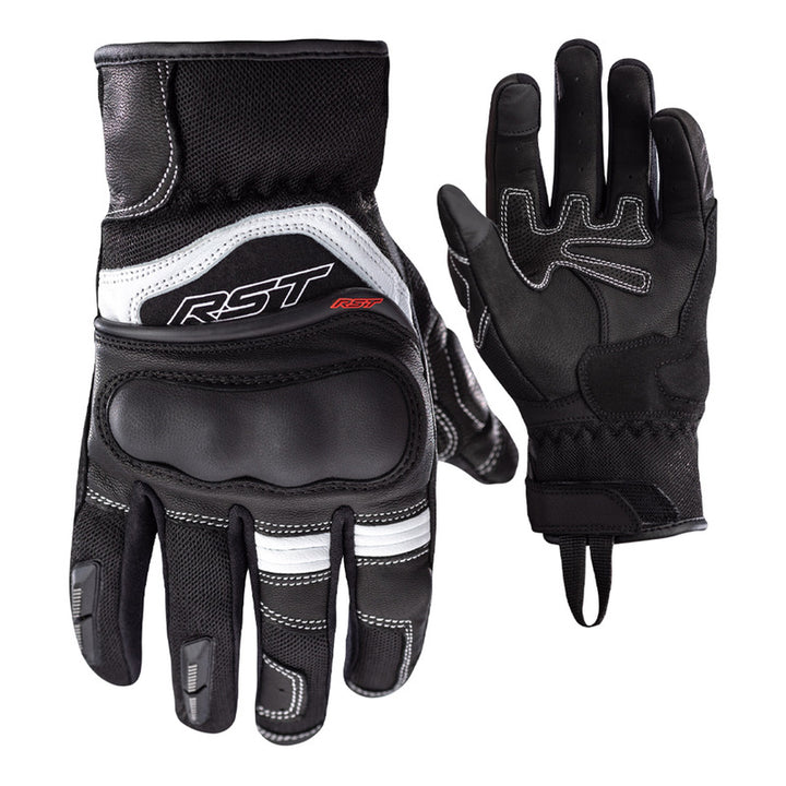 RST Mc-Handskar Urban Air 3 Mesh Svart/Vit med skyddande knogskydd och ventilerande meshmaterial, idealiska för motorcykelåkning.