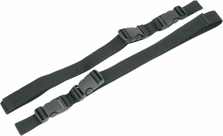To længdejusterbare nylonstropper er inkluderet; Hver måler 38 "l Når spænder ikke er forbundet, inkluderer hver rem en mand og en kvindelig spænde, plus en anden mandlig spænde syet til stroppen, der tilsluttes de fleste sadelmænd bagage, to separate kvindelige spændespænd inkl.