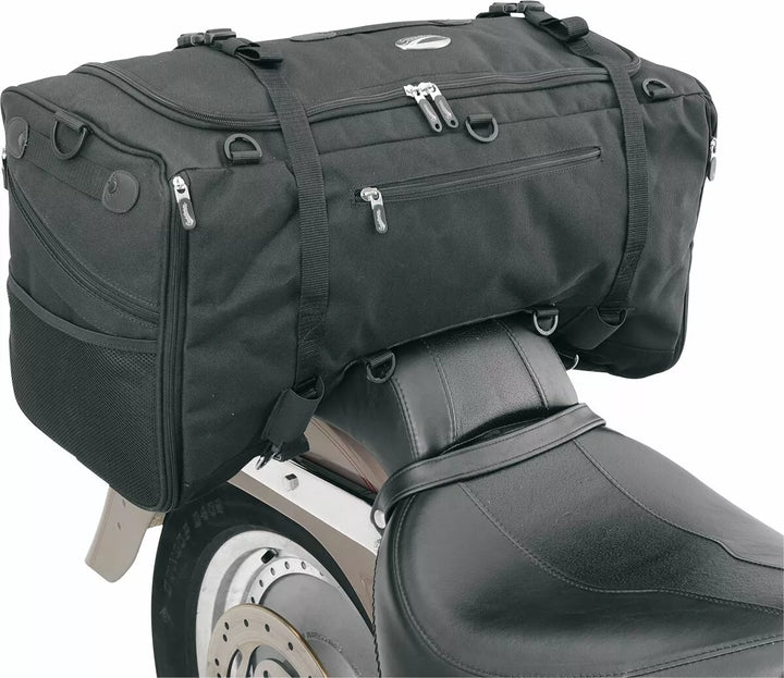 Universal, Quick-Detach-monteringssystem sikrer hurtigt taske til ramme, passagerpinde osv.; Tunnel Stladdles De fleste stativer og bagsæder for nem tændt/slukket montering, blød duffle-konstruktion hjælper posen i overensstemmelse med din foretrukne montering placering, lynlåsudvidelse giver opbevaring af længere genstande som teltstænger, bred topåbning med låselig lynlås til at tænde cykel, de øverste monterede komprimeringsbelastninger giver dig en jakke eller andre løse ting, der UV-, vand- og vejrbestandig 1200 "dimensioner Saddlets 3.200 kubik inches, EU-dimensioner: 64,77 cm W x 33,02 cm H x 30,48 cm D., EU Kapacitet: 52,44 L