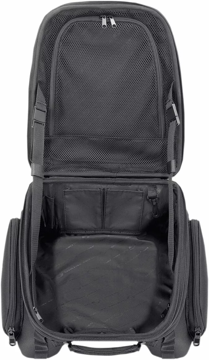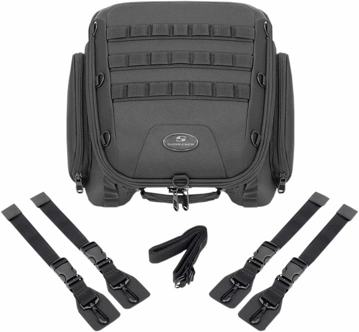 Strong Nylon Meshing Zipper Teeth With Black Sliders Equipped with Large Pulls For Easy Use With a Gloved Hand, Constructed of UV-, Water- and Weather-Resistant 1200 Deniers Saddletuff ™ and Saddlehyde ™ Panels, Multiple Oversized Oversized Mounting Challenges, Tech Organizer is Perfect for Smartphones, Digital Cameras or MP3 Players, Six Concealed, Easy-to-OS will not scratch the Cyklens finish, designet til at passe perfekt mellem rytteren og turnépakken, brydningsregndæksel hvidt dæk