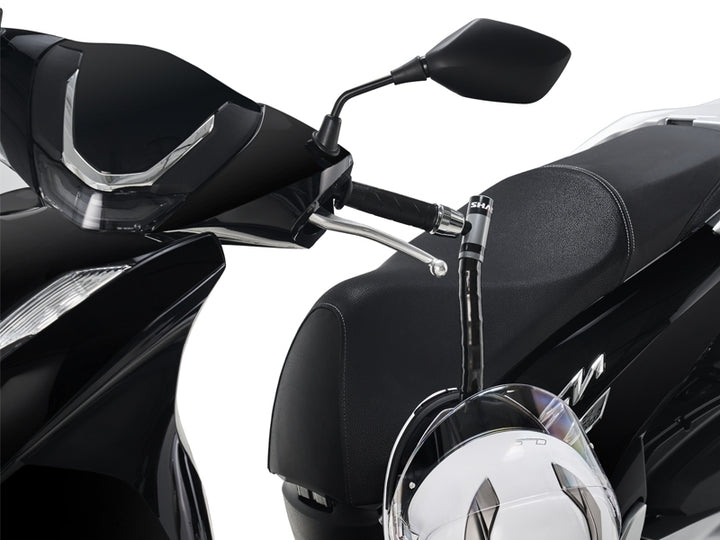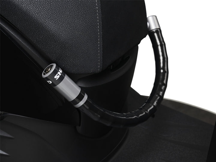 Hængelåsen monteres under sædet og fastgøres til styret for at immobilisere køretøjet.