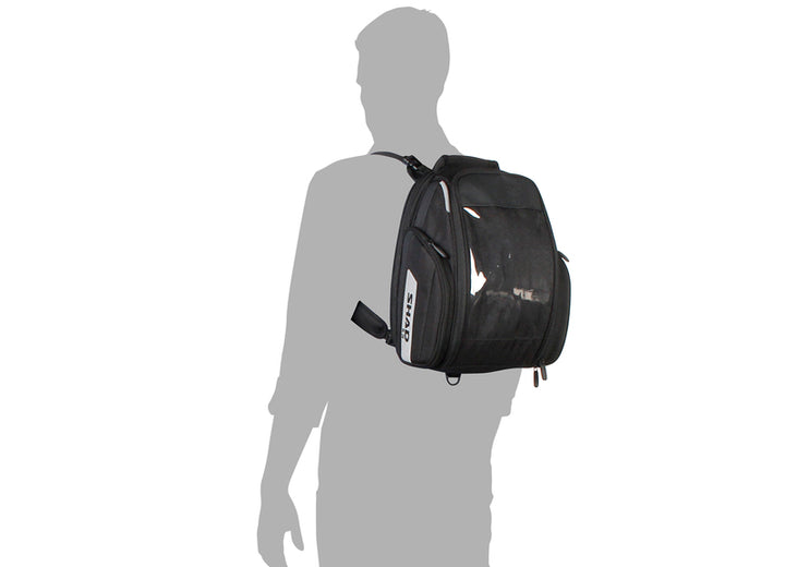 Udvidelig tankpose med reflekterende elementer for at øge sikkerheden. Med et øverste rum til kort, tablets, GPS, med berøringsskærm. Motorcykelfiksering gennem stropper, der er fastgjort til cykelramme og styr (inkluderet). Funktioner: • Lynlås lukning Hovedrum med låssløjfe for større sikkerhed. • Lynlås med resistente trækkere, der er egnede til brug med handsker. • 2 sidelommer med lynlås. • Vandtæt regnafdækning. • Udvidelig: Forøgelse af kapacitet op til 20L. Kapacitet til en jethjelm. • Flere reflekterende dele til sikkerhed. O Valgfrit: 4 Aftagelige magneter + Sikkerhedsrem til styret (ref. X1SL11) O Valgfrit: Universal Tank Base (ref. X1SL90) • Kabeludbud for at passere USB -opladeren. • Tilbehør: USB -oplader (ref. X1SB95). Farve: Sort dybde (CM): 40 Højde (CM): 18 Hjelmkapacitet: 1,0 bagageevne (L): 15/20L Bagage Type: Blødt materiale: Tekstil vejrbestandig: Vandtæt bredde (CM): 30.0