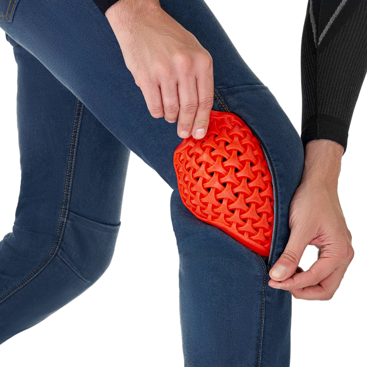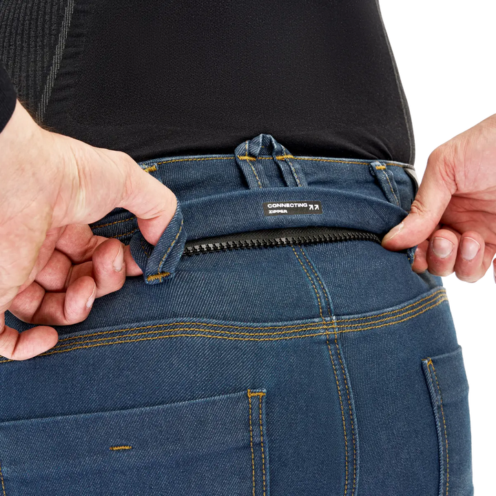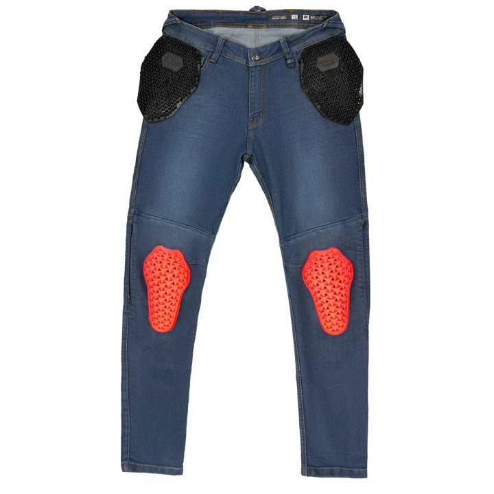 Lavet i holdbar Cordura®-Denim, kendt for sin ekstreme modstand mod slid og slid, med Duolayer Protection ™ i sårbare områder. På indersiden sidder GFLEXX-Protector (Niveau 2 på knæene, niveau 1 på hofter) - og knæbrande er smart placeret i Justerbare rum med velcro -adgang udefra. Dette betyder, at du kan justere beskyttelseshøjden uden at tage bukserne af.