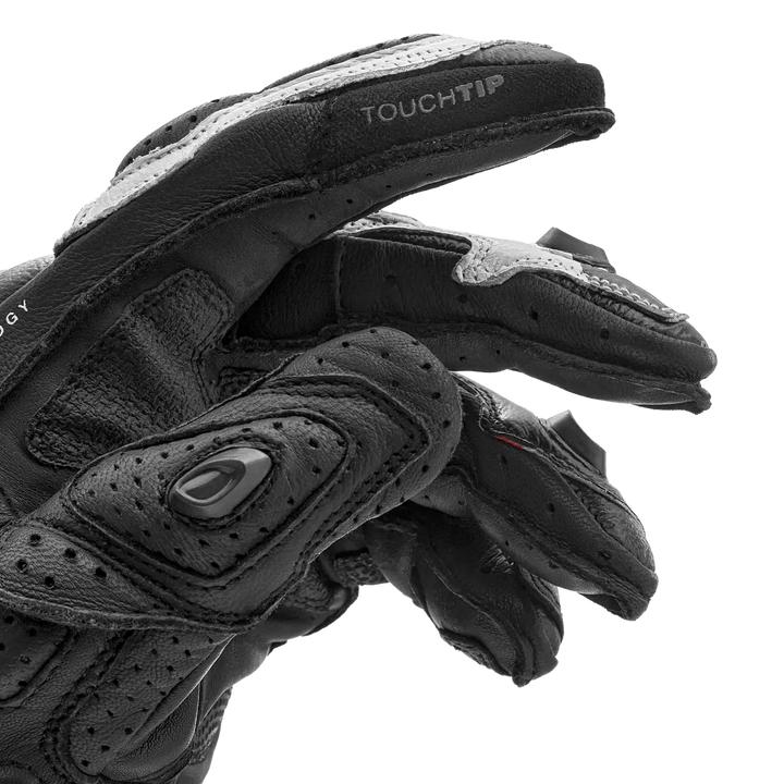 Lavet af holdbart gede læder og forstærket med Superlastisk og holdbar kengurooe i håndfladen. De er fyldt med Carbon Fiber Forstærket knækbeskyttelse, SAP -håndglas, Mini glider ved lillefingeren og Armorplus -fyldning på følsomme zoner. De forformede fingre med fingerbro mellem ring og lille finger beskytter hånden, når man kontakter asfalten.