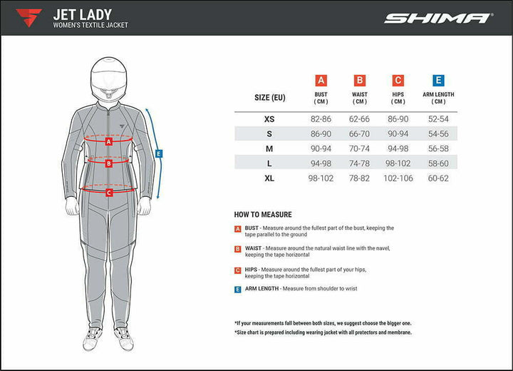 I regn eller kold vind kan det vandtætte og vindtæt NextDry ™ -membran også påføres på toppen. Udstyret med et system med certificeret CE-niveau 2-beskyttelse giver det øget sikkerhed, derudover forstærket af et slidbestandigt stof, der styrker albuer og skuldre. Med denne jakke kan du perfekt matche Shima Jeans eller specielt designet Airy Jet Lady Pants fra den samme serie. Takket være to forskellige forbindelseskæder kan du nemt fastgøre jakken med udvalgte bukser. Diskret holder reflekterende paneler dig i sikkerhed, selv på dage med nedsat synlighed.