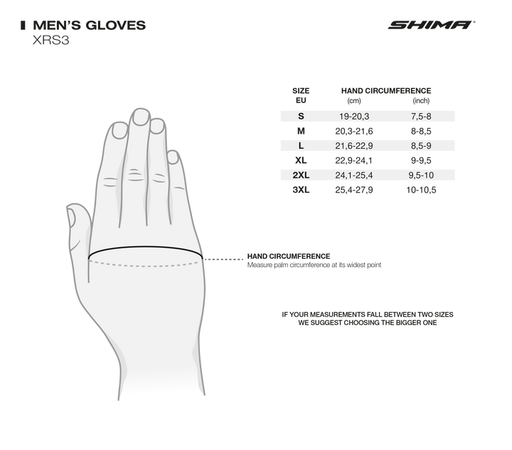 SHIMA XRS3 er designet med tanke på komfort under varme forhold. Perforeret skind både på ydersiden og indersiden af hånden sikrer fremragende ventilation, hvilket forhindrer, at hænderne bliver for varme og giver en kølig følelse selv på de varmeste dage. Ekstra perforeringer mellem fingrene og ved tommelfingeren øger luftflowet yderligere og sikrer maksimal komfort under kørsel.