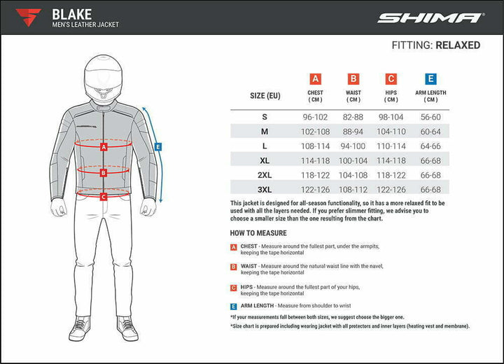 Det vil især blive værdsat af elsker af vintage stil på udkig efter et universelt produkt, der vil ledsage dem begge, når de kører, og efter at have gået af cyklen. Foruden H3 -overskriftskæden er en valgfri ekstra luftstrømningskontrolfunktion - et kraftfuldt køleventilationspanel, der kan åbnes i jakken. Blake -jakken er udstyret med certificeret albue og rygbeskyttelse inklusive Shima Armor plus beskyttelse med en hukommelseseffekt på bagsiden, som garanterer den højeste kvalitet af sikkerhed kombineret med en enestående følelse af komfort under ridning. Jakken er udstyret med en smart skjult tør lomme i foringen, og en kort lynlås giver dig mulighed for at fastgøre den med udvalgte Shima -bukser. Hver model leveres med en nøglering i læder, der passer perfekt til din jakke.