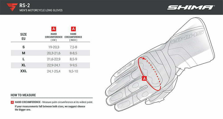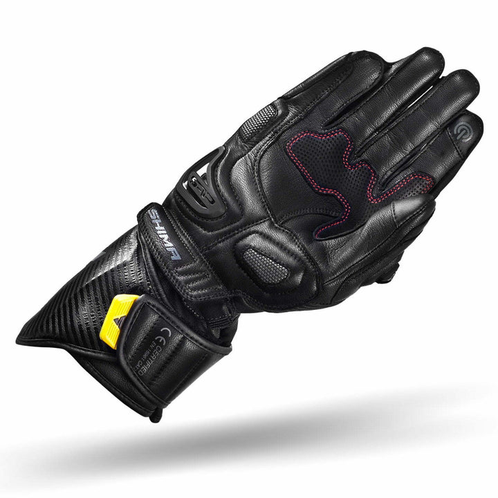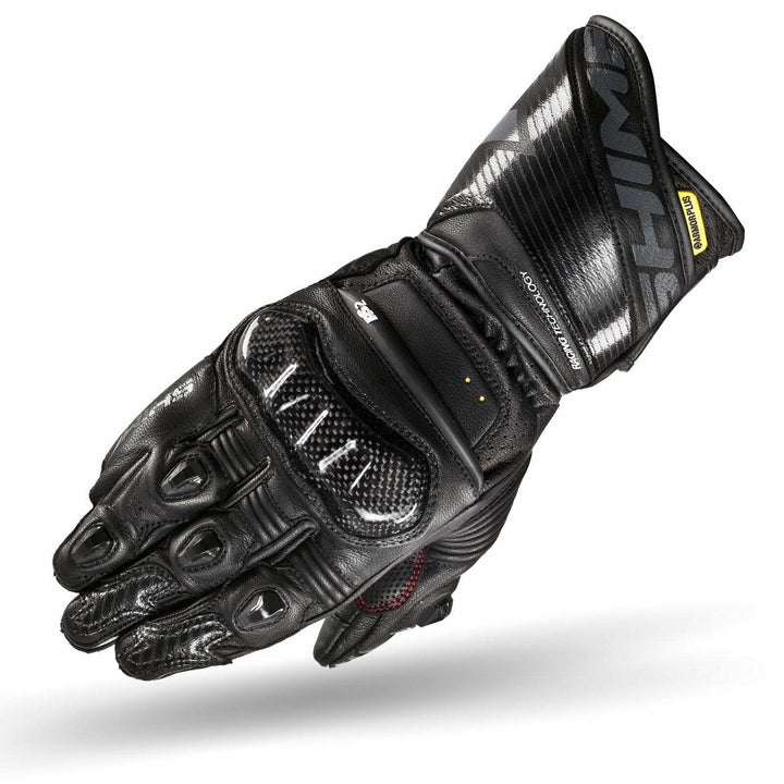 Lange, sportsmotorcykelhandsker Shima RS-2, carbonfiberforstærket.