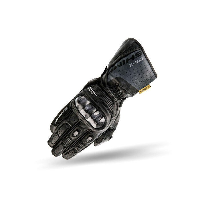 Shima STR-2 har perforeret læder på fingrene for optimal ventilation i varme dage. Sømmene, der bruges i denne model, er eksterne for at eliminere trykket på fingrene, og de er designet med en elastisk struktur, hvilket gør det lettere at arbejde på gearkontrollerne på længere ture. Mange folder og indsatser af fleksibelt materiale gør handsken let at tilpasse sig hånden. Derudover øger akkumulering af materialer ikke kun mobilitet på steder, der er mest udsat for spænding, men har også en beskyttende funktion. En slip -fri patch monteret på indersiden af ​​hånden forhindrer grebet i at glide og hjælper med at stabilisere den.