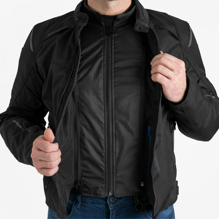 RUSH 2.0 er en motorcykeljakke, der giver dig termisk komfort under alle vejrforhold. H3 Heat Free-systemet og ventilationspaneler på brystet, underarmene, siderne og ryggen lader dig fuldstændig kontrollere temperaturreguleringen. Intuitiv kontrol via lynlåse muliggør hurtig ventilation tilpasset de aktuelle forhold. Modellen har et aftageligt isolerende lag og en vandtæt NextDry™-membran, der fungerer som en effektiv barriere mod regn og en fremragende vindblokker.