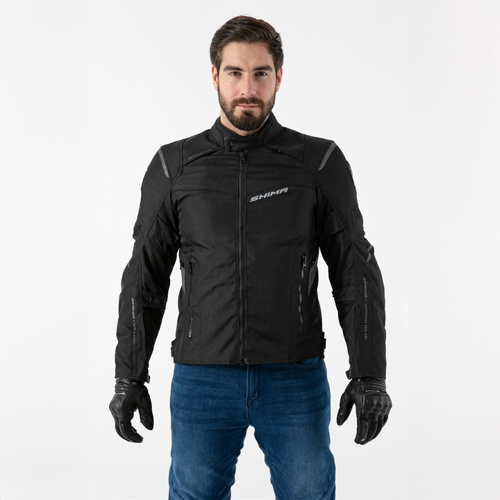 Vi præsenterer efterfølgeren til den populære model RUSH! Version 2.0 er en trelags tekstil motorcykeljakke til mænd med endnu bedre egenskaber. Det forstærkende stof DuoLayer Protection på skuldrene og albuerne garanterer fremragende holdbarhed. Certificerede SHIMA AirForce-beskyttelse - niveau 2 på ryggen samt niveau 1 på skuldre og albuer - sikrer, at din sikkerhed er i fokus under kørslen. Jakken er designet til by- og forstæderrejser i forskellige vejrforhold. Derfor er den udstyret med ventilationssystemet H3 Heat Free, den vandtætte membran NextDry™ og et aftageligt isolerende lag. Gennemtænkt design, mandlig pasform og justering i taljen og på ærmerne giver en exceptionel komfort. Kopplingslynlåse - 360° og en kort lynlås - muliggør hurtig og nem tilslutning af jakken til bukser fra mærket SHIMA. Ved at kombinere modellen med bukserne RUSH 2.0 skaber du et universelt tekstilsæt til alle motorcykelture. Jakken fås i 3 farveversioner og et bredt udvalg af størrelser. Findes også i en damemodel.