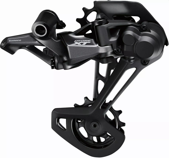Shimano Kære Xt - Bagderailleur - Shimano Shadow Rd+ - 1x12 -Speed. RD-M8100SGS. Deore XT M8100-serien., Den helt nye Shimano Deore XT M8100-serie af Derainurs-binger et nyt niveau af drivetrain-stilhed takket være nedsat spænding i den lave gearposition og en ekstra kofanger på remskiven. , Større 13T-remskiver øger effektiviteten og kædestyring, mens kompatibilitet med Shimanos nye 12-trins kassetter øger rækkevidden., Hyperglide+ for hurtigere og chokfri skift., Bredt udvalg 12-trins drivetrain med lave sprock-kombineringspositioner., Nedsat bagderaille og kædespænding i lavt gear. , Ny kofanger føjet til bageste derailleur remskive bur., Stødstop., Stabilt drivetrain på ru terræn. , Lavprofil design. , Shimano Shadow Rd+. , Kompatibel kæde: HG 12-trins (ikke inkluderet).