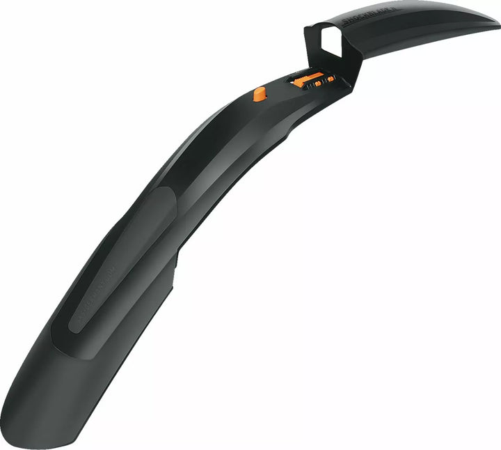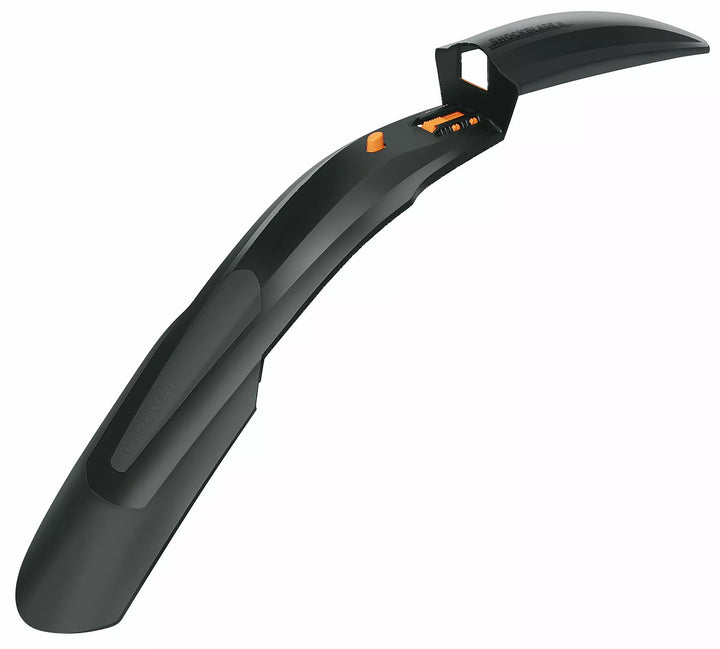 SKS Shockblade Mudguard til mountainbikes beskytter pålideligt mod mudderstænk og vand. Det er lavet af 2-komponentplastik af høj kvalitet, er ekstremt let og alligevel modstandsdygtig over for brud. , Den brede spoiler lavet af bløde softs-plast forbedrer stænkbeskyttelsen og fungerer som en kantbeskytter, når man kommer til og fra cyklen., Klip-on mudguard til mountainbikes er velegnet til næsten enhver ophængsgaffel og kan fastgøres og fjernes og fjernes EAS. Forbedret keglesystem 2,0 dækker en diameter på op til 39 mm (1,8 ") og har sofistikerede monteringskomponenter til en optimal pasform. To kegleadaptere, der spænder fra 19 til 39 mm, er inkluderet., Lavet i Tyskland.