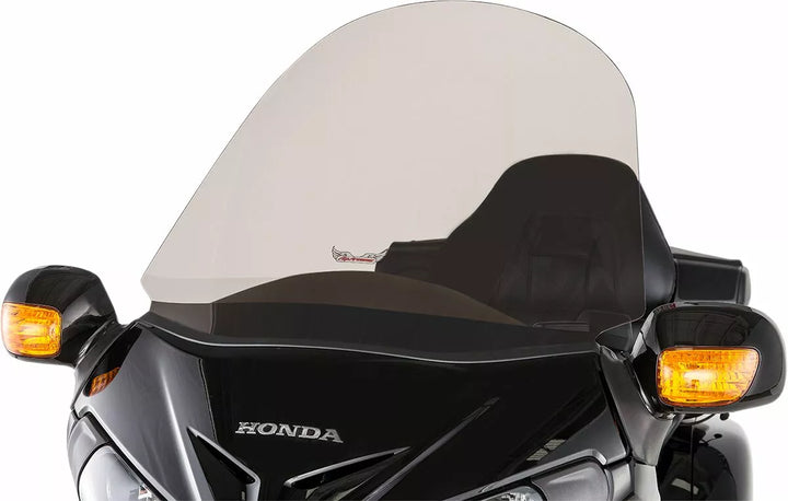 Giver mere vindbeskyttelse for både rytter og passager, lavet af 3/16 "lucite ᆴ, formet i skrå form for at passe til linjer med fairing, reducerer buffet og forbedrer gas kilometertal, lavet i U..A.