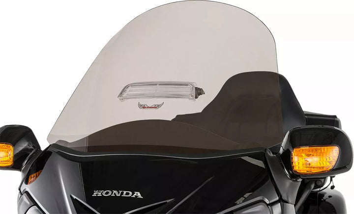 Giver mere vindbeskyttelse for både rytter og passager, lavet af 3/16 "lucite ᆴ, formet i skrå form for at passe til linjer med fairing, reducerer buffet og forbedrer gas kilometertal, lavet i U..A.