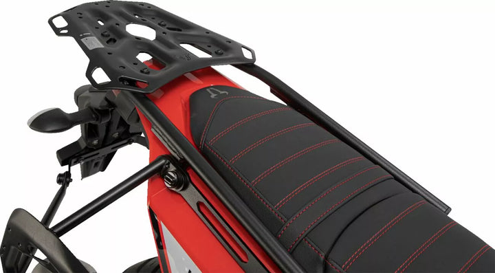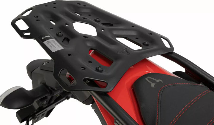 Ekstremt robust rack til lange ture og off-road rides, eksklusive fremstillingsprocesser og dens optimerede form giver en ekstra dosis stabilitet til stativet, dens ekstreme holdbarhed under vibrationer, påvirkninger og høj vægt blev testet i laboratoriet og off-road under de hårdeste condit-sager. Sysbag med adapterplade fås separat med det relevante adapterkit, tilbyder adaptersæt til fastgørelse af toptilfælde fra Givi, Krauser og Shad, let rigning af bagage på adskillige, store surrende øjne, gevind på 25 mm fastgørelsesmidler (bredde: 32,9 cm ved fronten, 22,5 cm ved bagsiden, længde: 30,3 cm), let installation på originale fastgørelsespunkter med Bike-SPECIFICIFICTICES elementer