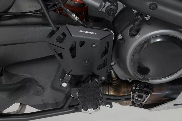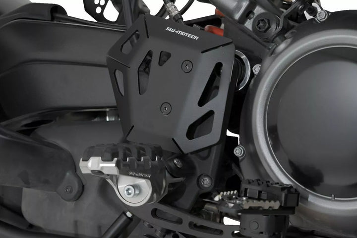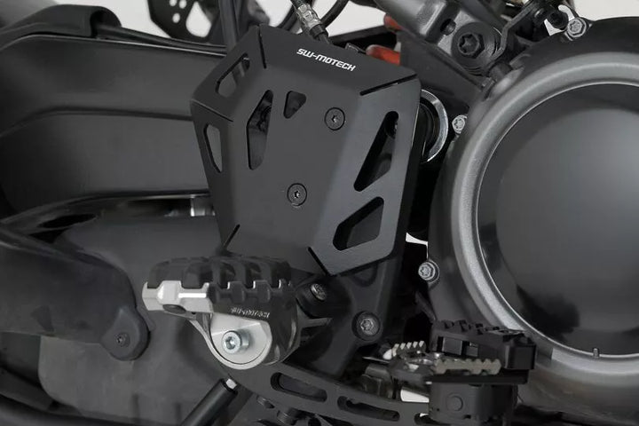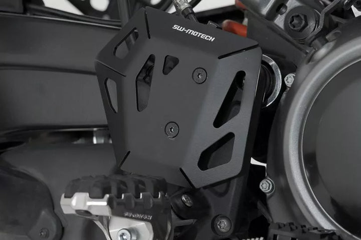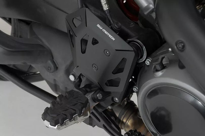 Den foldede og laserskårne aluminiumsbeskytter beskytter fodbremsecylinderen-selv mod uønsket bagagerumskontakt, forhindrer kontakt mellem støvler og bremsepumpe, giver yderligere beskyttelse under off-road-drevet materiale