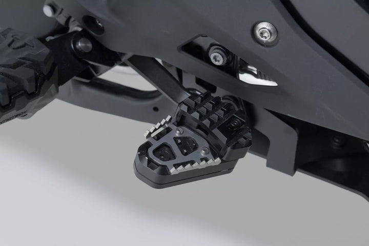 Udvidelsen til bremsepedal er ideel til off-roading: Det forbedrer den originale bremsearmbehandling og garanterer en sikker, kontrolleret brug af bremsen. , Når du står, ændres vinklen på dit knæ, så din fod kan ikke lægge så meget pres på den mindre pedal. , Udvidelsen af mænd, det er muligt for kontaktoverfladen at være både bredere og højere. Takket være den hævede kontaktoverflade er din fod vinklet flere skaller, så den kan nå og kontrollere bremsearmen lettere, selv når du står. , Det betyder, at udvidelsen til bremsepedal tilbyder bedre sikkerhed og bedre kontrol over Realar-bremsen. Når du off-roading, skifter du ofte mellem siddende og stående positioner. Foruden den hævede overflade har udvidelsen til bremsepedal en widacts -overflade. , Dette er udstyret med en ridget overflade, så det tilbyder forbedret greb, når armoverfladen er beskidt eller våd., Forbedrer den originale bremsepedal, hævet og bredere overflade, forbedret greb takket være Ridged Surface ヨ Selv Surfae Vet og Dirty