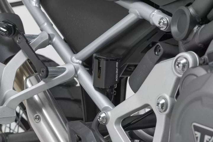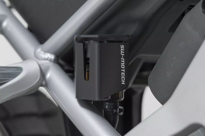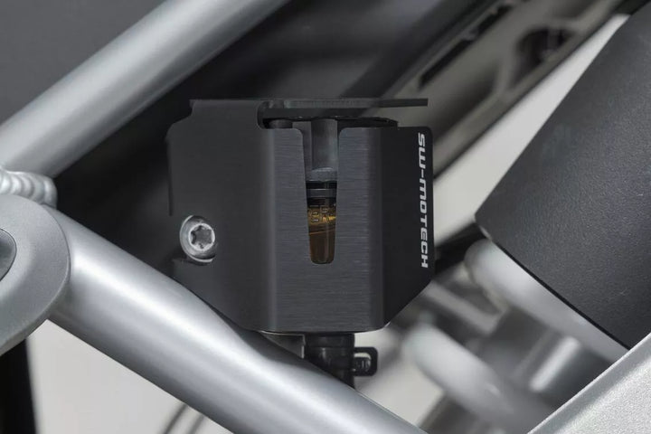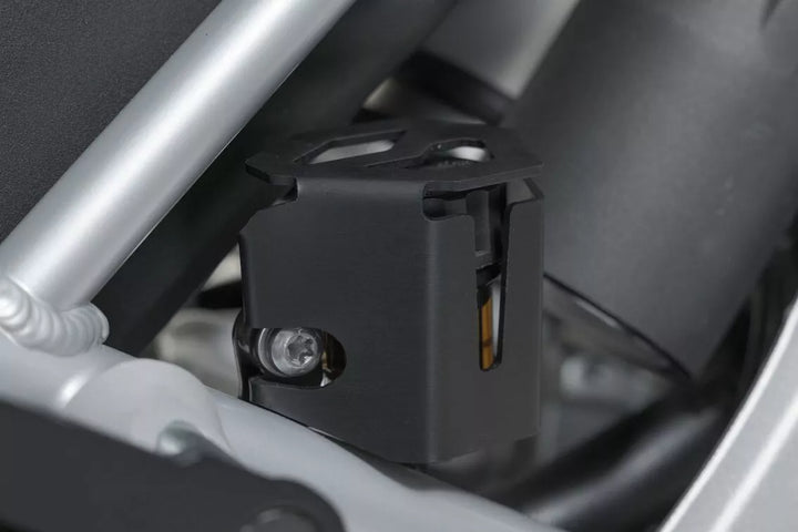 Den kompakte bremseservoirbeskyttelse beskytter det originale bremseservoir mod stenchips og forhindrer samtidig uønsket fjernelse af dækslet. Beskytteren kan installeres på motorcyklen i et par enkle trin, lavet af 2 mm tykt aluminium, design og håndværk af høj kvalitet, beskytter det originale bremseservoir mod klippefly