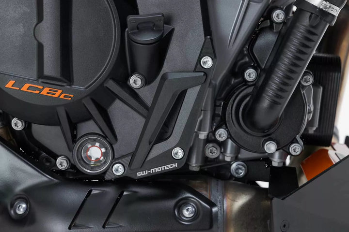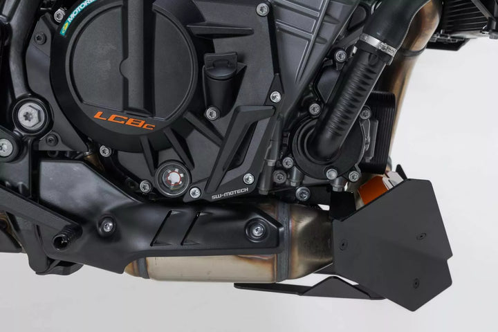Pålidelig beskyttelse i tilfælde af jordkontakt eller en ulykke, afskærmning for venstre og højre motorsidetilfælde, maskine møllet fra højstyrke aluminiumslegering, ingen indflydelse på cykler vejadfærd, nem installation til anodpro-punkter på den originale motorkasse