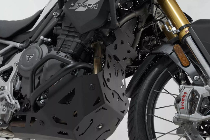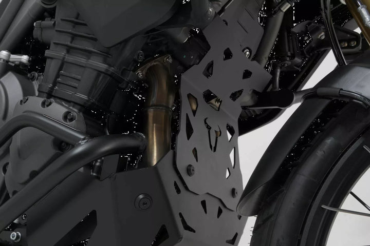 Motorbeskyttelsesforlængelsen beskytter det forreste område af motorblokken mod stenchips, lavet af børstet og kraftbelagt aluminium, udvidelsen kan monteres på egen hånd eller ud over en SW-motech-motorbeskyttelse, 3-delt beskyttelsesmotorblok med op til 130 mm, inkluderet i levering, monteringsmateriale, monteringsinstruktioner