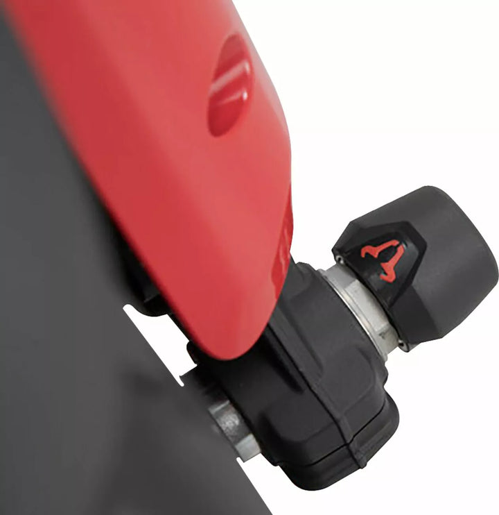 Robust kerne lavet af glasfiberforstærket plast (PA6 GF30), diskret skyderpude lavet af slidbestandigt polyamid, gode glidende egenskaber og nødoperationsfunktioner, let montering med akseltråd og cykelspecifikke afstandsstykker, belægning, matte sort overflade med poleret tyrlogo i rød, beskyttelse til gaffel