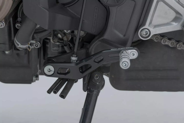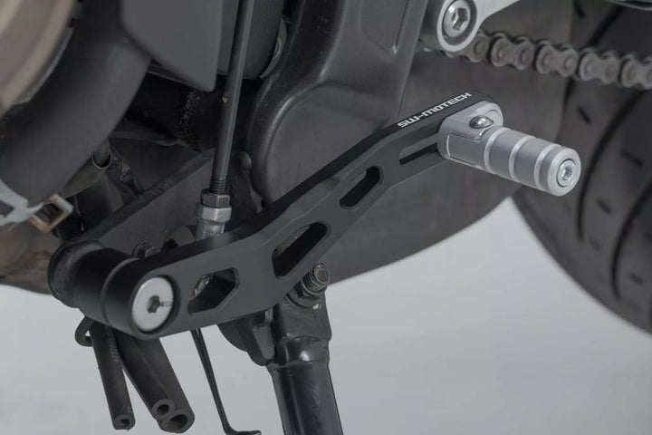 Behandlingen kan også monteres i en 180 ᄚ vinkel, bedre ergonomi og sikker drift af gearleveren, en fjedermekanisme gør det muligt at foldes ned og beskytter den mod at bryde i tilfælde af et styrt, robust og elegant: CNC-Milled, Hart-Coate, Hart ᆴ Cat ᆴ Cat ᆴ (tilgængelig separat) til udvidelse af den godbitale overflade, generel driftslicens ikke krævet for tysk trafik