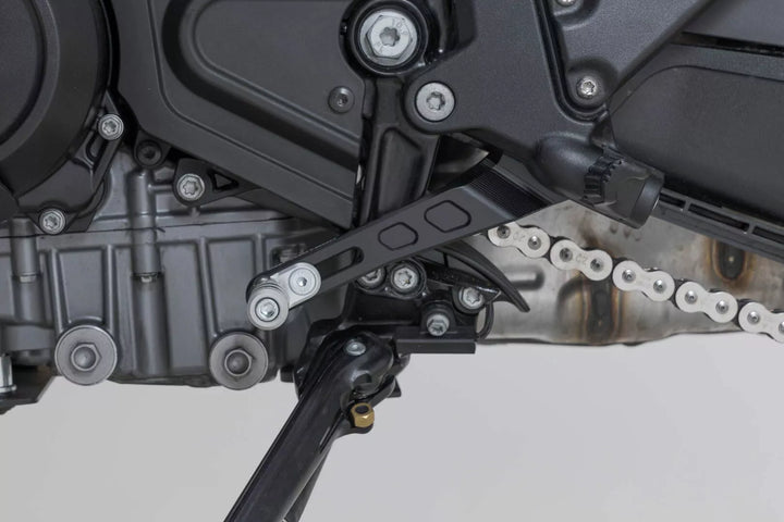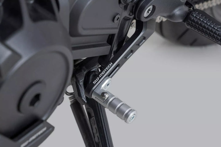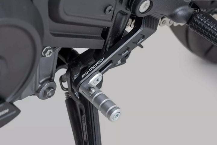 Behandlingen kan også monteres i en 180 ᄚ vinkel, bedre ergonomi og sikker drift af gearleveren, en fjedermekanisme gør det muligt at foldes ned og beskytter den mod at bryde i tilfælde af et styrt, robust og elegant: CNC-Milled, Hart-Coate, Hart ᆴ Cat ᆴ Cat ᆴ (tilgængelig separat) til udvidelse af den godbitale overflade, generel driftslicens ikke krævet for tysk trafik