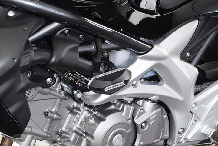 Tilvejebringer yderligere beskyttelse i tilfælde af et fald, beskytter rammen, motoren og fairing, formen, overfladen og materialerne i puderne giver fremragende glidende egenskaber for at reducere skader på motorcyklen, den robuste aluminiumsmonteringsbeslag er let at installere er udskiftelig, velformet, udvekslbar (hvis nødvendigt) gliderpude lavet af abrasion-resistent polyamid, stor kontaktoverflade til bedst mulig kraftfordeling, optimiseret overflade med god overflade Ekstrem fremstillet let montering og robust ramme tilknytning takket være cykelspecifikke tilføjelseselementer, inkluderer montering af hardware og instruktioner