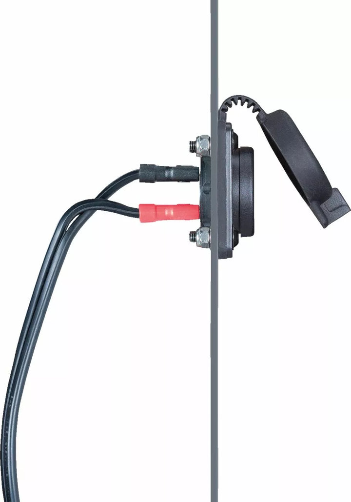 Batteriforbindelsesnet inkluderer beskyttelse af sikring af sikring (15A ATO-sikring) og dobbeltstørrelse (5/16 ”| 3/8”) Opkaldsterminaler til direkte tilknytning til batteridag/terminaler, Magcode 12V magnetisk port, bedømt til 15 ampere, med panel Munt Panel Munt Kita Kit & Har. Modtager et Magcode 12V-klip til modtagelse