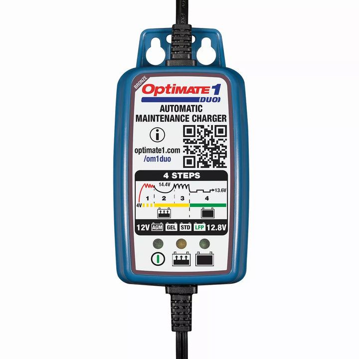 Opticate 1 Duo Bronze Series: 4-trins 12V / 12,8V 0,6A batteri Mainainer., ム No Brainer メ Battery vedligeholder til hi-teknologibatteriet i dit Performance Power Sport Vehicle. Garantier sundt lithium- eller bly-syrebatteri!, Ideel til 12V bly-syre & 12.8V / 13.2V lithium LFP (LIFEPO4) batterier., Duo: Tilpas automatisk til den tilsluttede batteritype. Tilpas automatisk til PB- eller LFP -batteri. Opticate 1 Duo gør tankerne for dig!, Afgifter og leverer langsigtet vedligeholdelse automatisk. Opticate 1 Duo gør dit batteri stærkere og varer langs, ingen tilsyn krævet!, Sikkert at forlade tilsluttet. Fuld elektronisk beskyttelse., 24/7: sikkert at forlade forbundet. Fuld elektronisk beskyttelse., Low Volt Start of 4v., Grøn teknologi: Energibesparende teknologi. Standby-strøm mindre end 0,5 W. Effektiv 24-7 Batteriledvedligeholdelse., IP50: Støvtæt. Bedømt til indendørs brug ned til -20 ᄚ C / -4 ᄚ F., inkluderer 2 udskiftelige batteriforbindelsestilbehør.