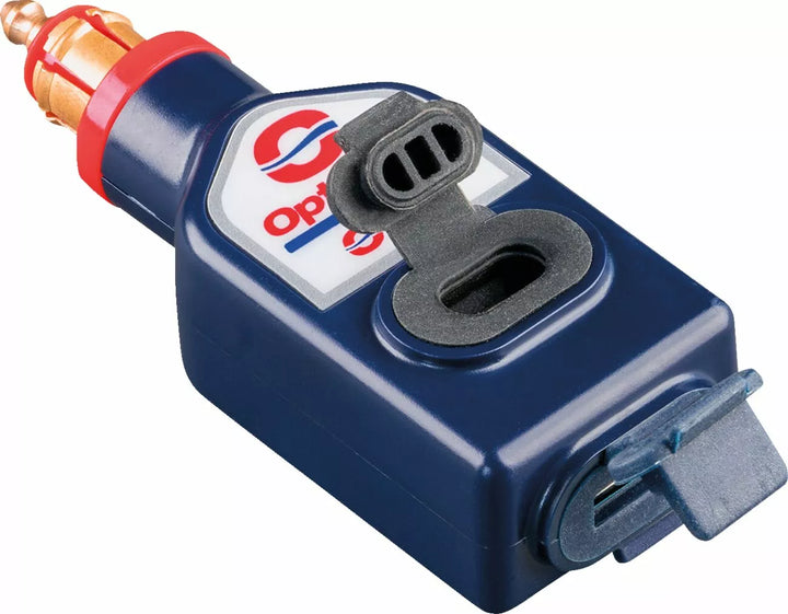 3300mA Dual Output Vejrbestandig USB-oplader med cykelstik (passer til BMW, Triumph, Ducati Multistrada)., Det bærbare 3300mA dobbelt USB-oplader med USB-A og USB-C-port, med in-line 180 ° Cykelstik til din triumf til Triumph 800 og seneste Ducati-multistrada., 1x USA 180 ° Dit stik., Kraftig 3300mA-ladningsstrøm leveret fra USB-C-port eller strøm er Shab-Ab-A-port også brugt enheder., Arbejder på din ducati m / s, BMW eller triumph monteret med et moderne 12V batteri, bly-acid (Pb / AGM) eller lithium-ion (LifeP04 / LFP) -Does ikke nedbryder batteriet i. Parkerede køretøjets batteri fra dræning., Bedømt til normal t ° og udendørs brug.