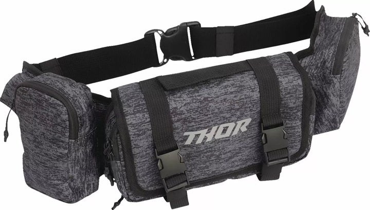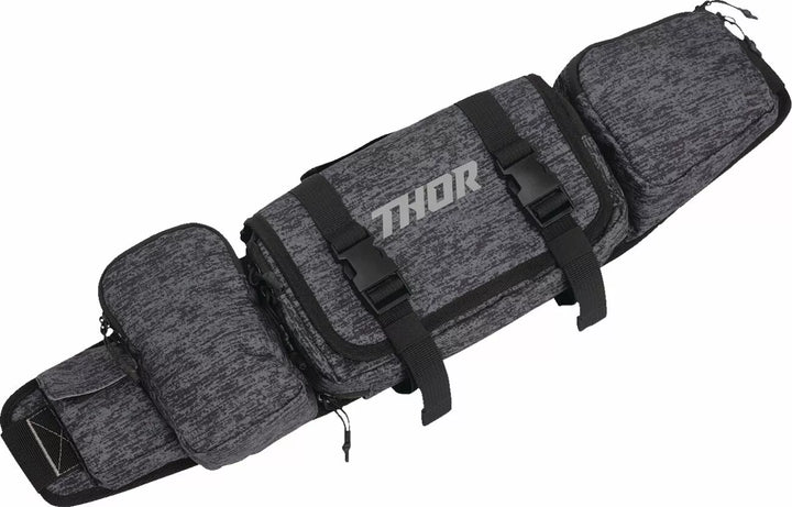 Indbygget værktøjsrulle med elastiske værktøjsspor, stort polstret talje bælte jævnt fordeler vægt, coated meshlomme til bolte og andre små værktøjer, Thor reflekterende logo, nylonforet 600D polyester i hele, race radiomlomme, der måler 6 cm), dimensioner: 26 "L (66,04 cm) x 6" H (15,24 cm) x 3 "D (7,62 cm)