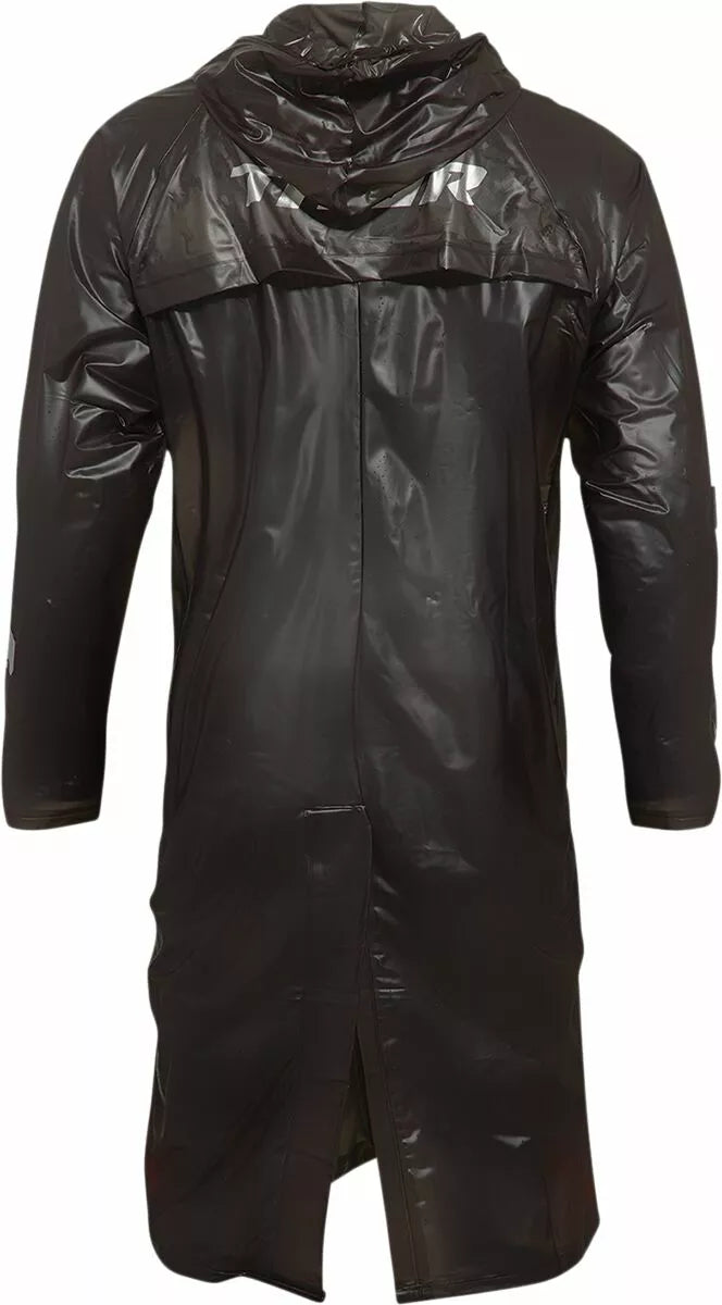100% PVC-konstruktion, Raglan-ærmer med underarmsnetpaneler til ventilation, semi-translucent materiale, front lasteklaplommer, bageste udstødningsventiler giver varm luft mulighed for at flygte, lynlås og knap-snap-lukninger, trækstrenge hætte
