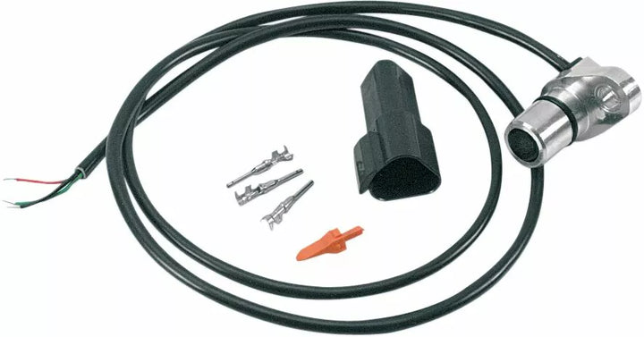 Chrome billet -sensor, inkluderer OEM Deutsch -stik, til brug med lagerlængde startmotor på de fleste '96 -'03 Big Twin -modeller, lavet i U.S.A.
